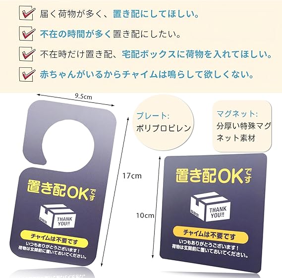 MINGYI TECH 置き配 マグネット ステッカー プレート 宅配 置配 宅配BOX 置き配ステッカー 再配達 宅急便 留守 屋外 玄関 ポスト 置き配OKです(マグネット + プレート) a