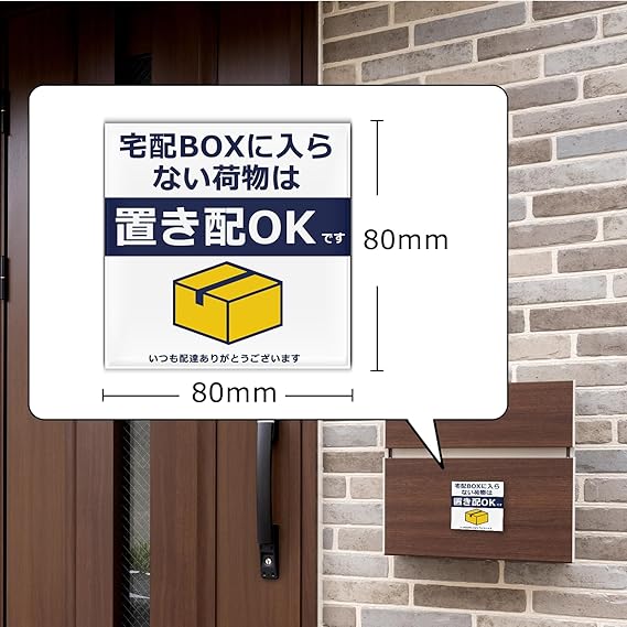 玄関のドアやインターホンの近くに貼ることにより、配達員に置き配希望を知らせることができます。