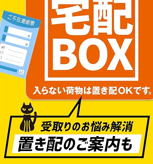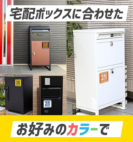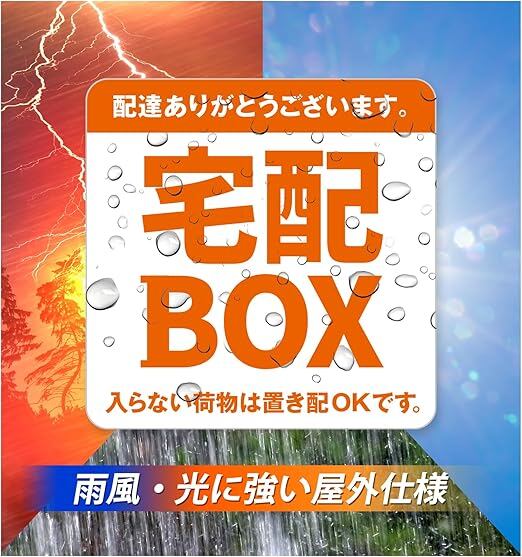 【見やすい日本語表示】目立つデザインの「宅配BOX」に加え「配達ありがとうございます」「入らない荷物は置き配OKです」のメッセージ付き。配達員にすぐ伝わる