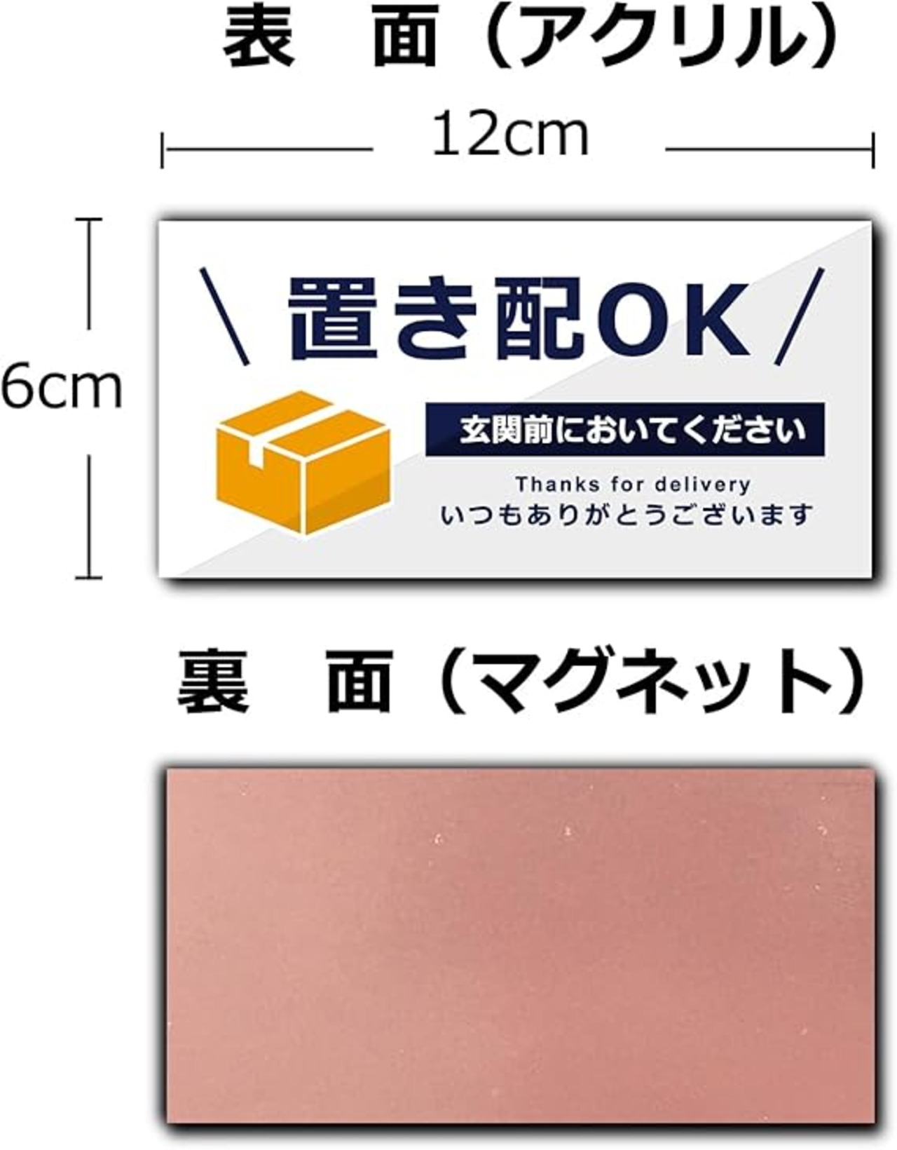 XILIWU 置き配OK マグネット アクリル製 12×6㎝ 屋外用 サインプレート 宅配ボックス 宅配BOX 再配達 防水 耐候 玄関 (玄関前に置いてください, ホワイト(マグネット)) a