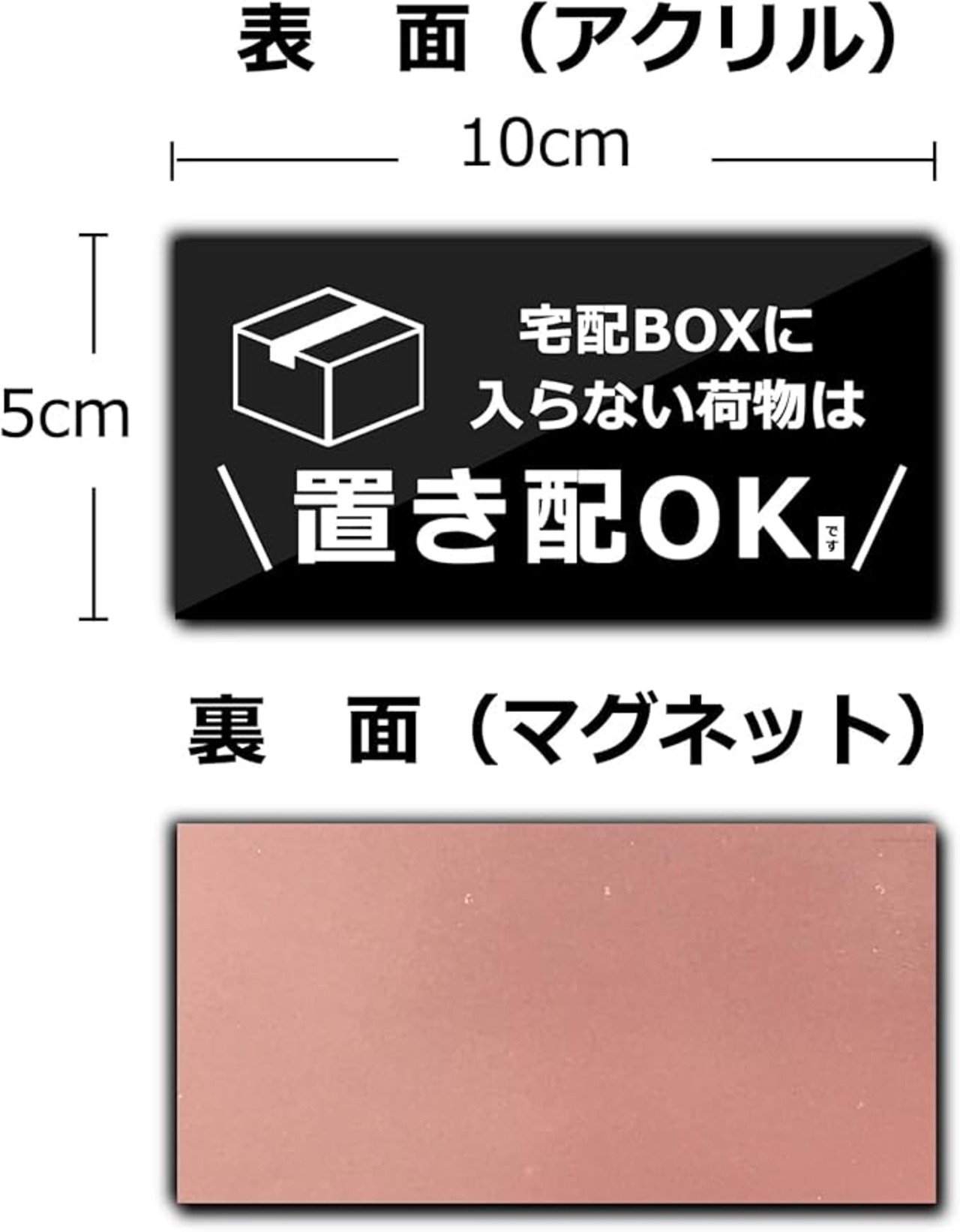 XILIWU 宅配BOXに入らない荷物は置き配OK プレート アクリル製 10×5㎝ 屋外用 サインプレート 宅配ボックス 宅配BOX 再配達 防水 耐候 玄関 (ブラック, マグネット) a