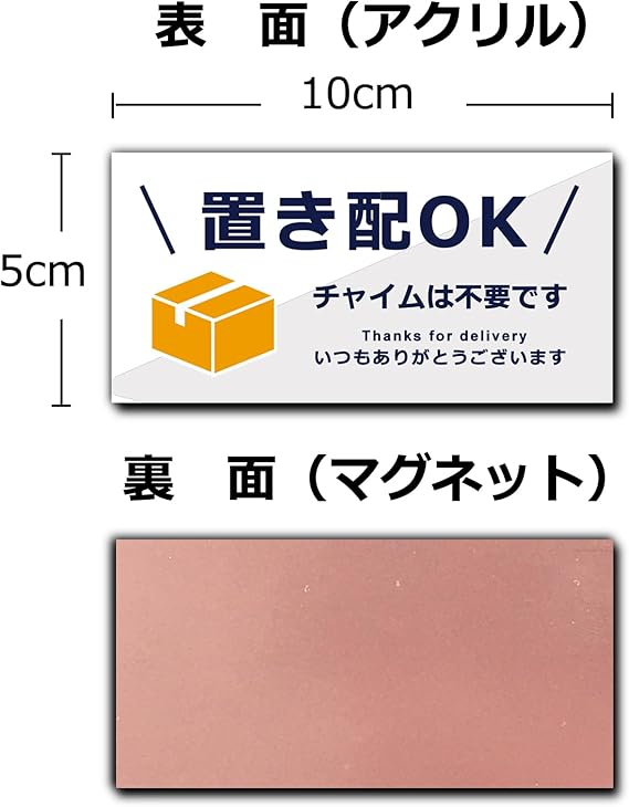 XILIWU 置き配OK マグネット アクリル製 10×5㎝ 屋外用 サインプレート 宅配ボックス 宅配BOX 再配達 防水 耐候 玄関 (チャイムは不要です, ホワイト(マグネット)) a