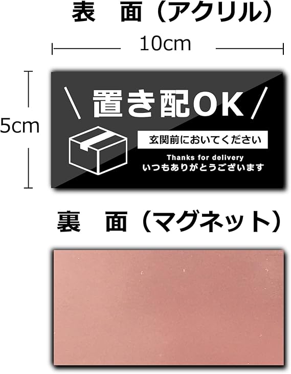 XILIWU 置き配OK マグネット アクリル製 10×5㎝ 屋外用 サインプレート 宅配ボックス 宅配BOX 再配達 防水 耐候 玄関 (玄関前に置いてください, ブラック(マグネット)) a