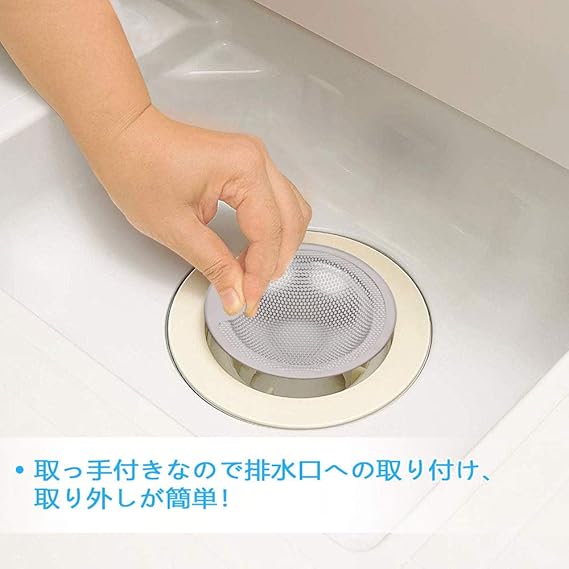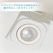 パンチング穴なので水切れがよく、髪の毛もしっかりキャッチします。排水口への取り付け取り外しも簡単です。