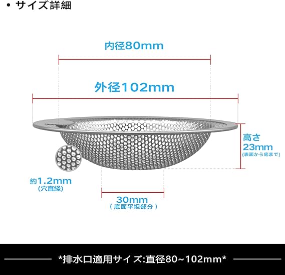 IRETION ユニットバス用 ゴミ受け ヘアキャッチャー パンチング ステンレス 排水口サイズ:80-102mm a