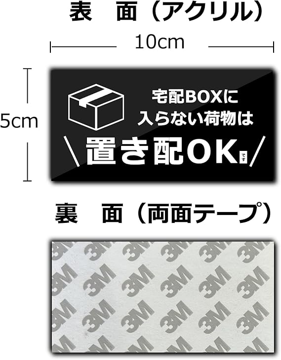 XILIWU 宅配BOXに入らない荷物は置き配OK プレート アクリル製 10×5㎝ 屋外用 サインプレート 宅配ボックス 宅配BOX 再配達 防水 耐候 玄関 (ブラック, ステッカー) a