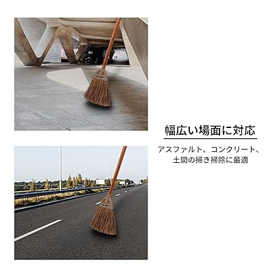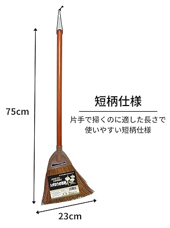 【特徴】穂はコシの強い赤シダを使用し、屋外の粗ごみの掃除に適しています。木柄仕様の高級ホーキです。