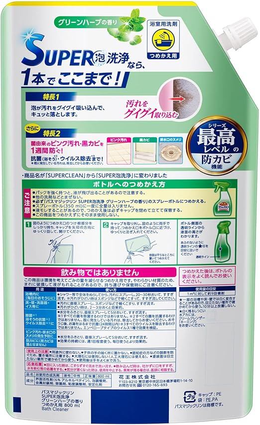 花王 バスマジックリンSUPER泡洗浄ハーブ詰替特大 800ml a