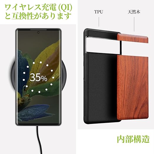 「製品構成」軽量で保護機能を兼ね備えた木製のスマホケースです。木材と高品質のソフト TPU(熱可塑性ポリウレタン)をベースに作られており、美しい外観だけでなく、保護機能も優れています。美しい木目が個性を際立たせます。製品を受け取った時、その独特で自然な美しさを感じることができます。