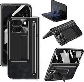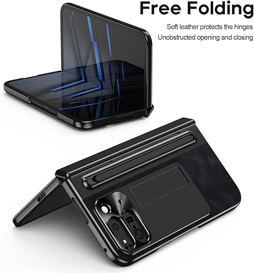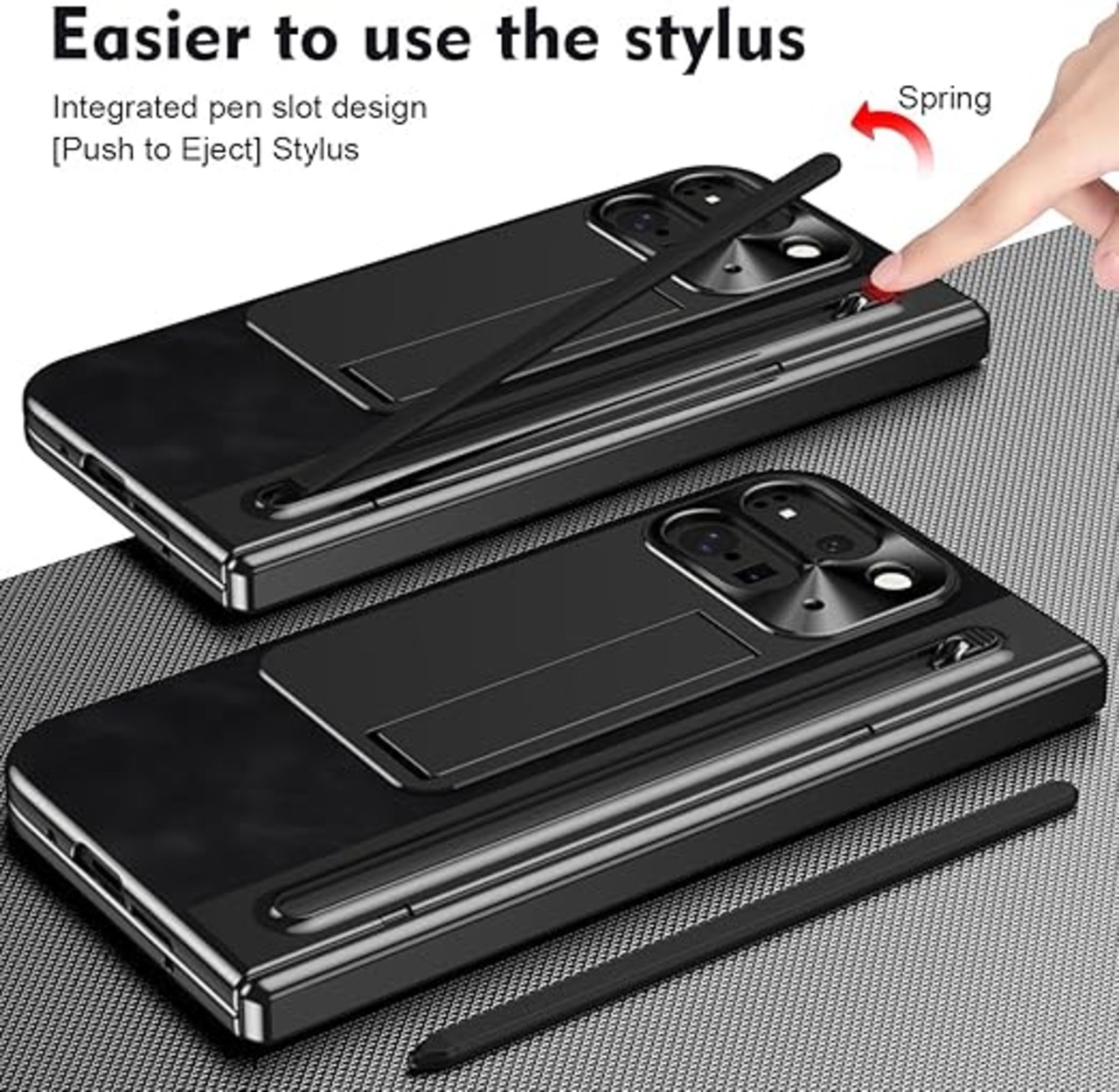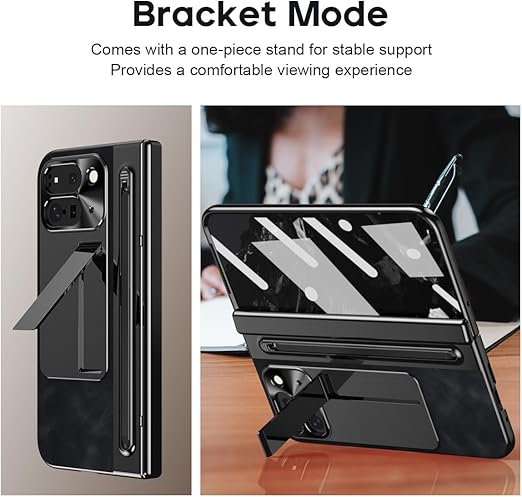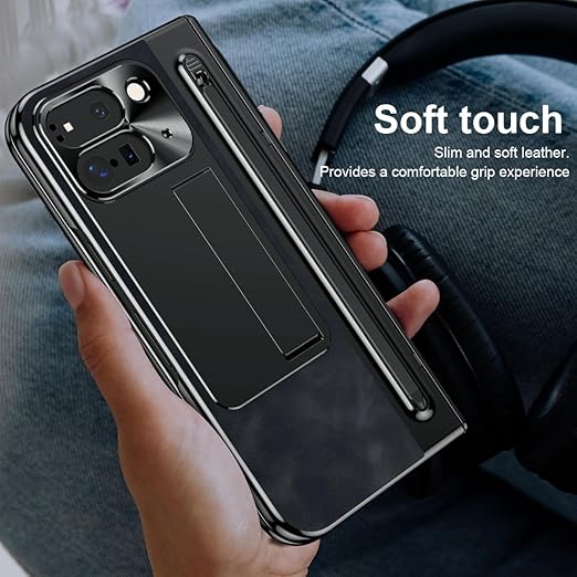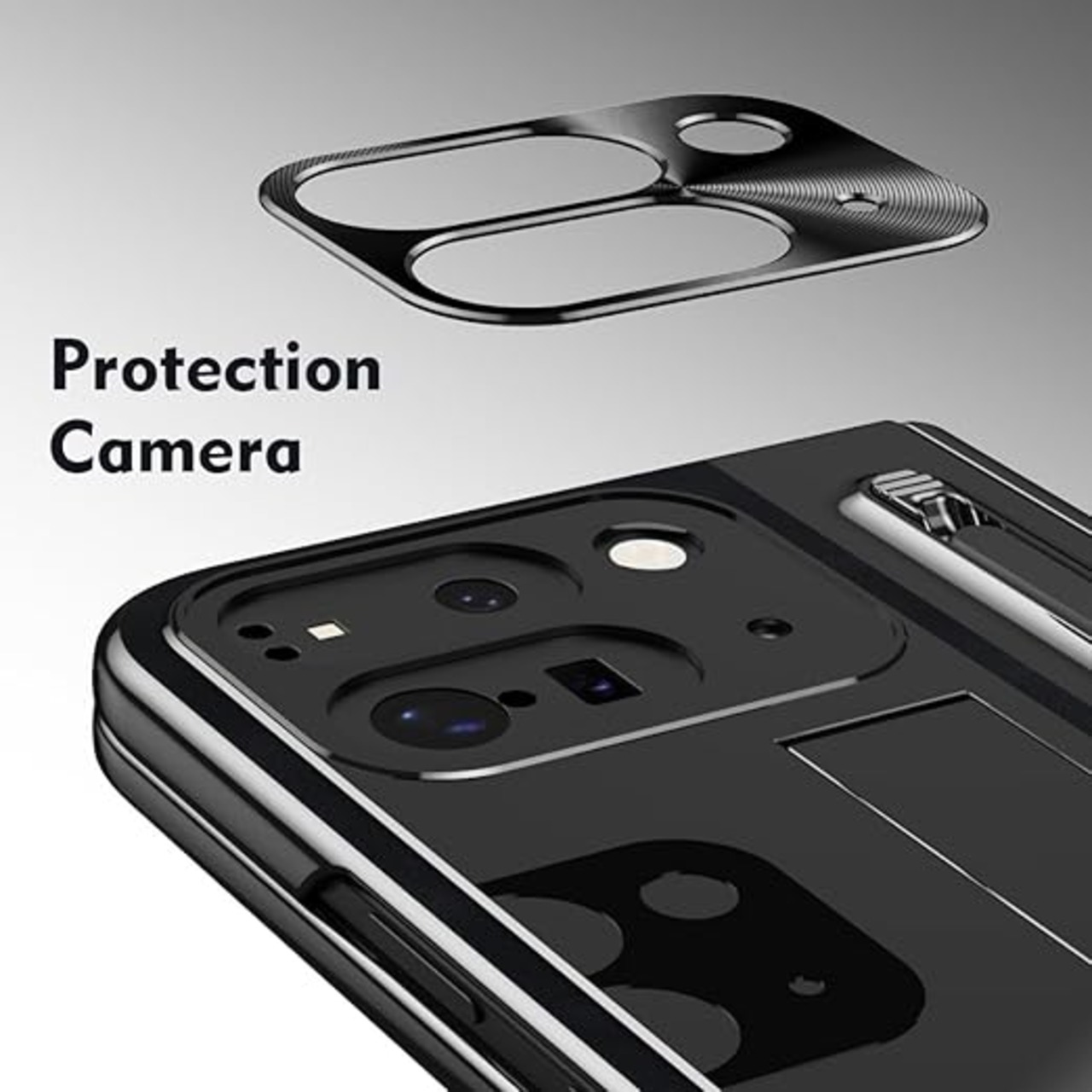 ケース Google Pixel 9 Pro Fold / 10 Pro Foldペンみぞ メタルレンズカバー つや消し皮革 薄型 軽量 隠しブラケット機能 ヒンジ保護 携帯 手帳型,折り畳み おしゃれ 人気 かわいい フリップ 衝撃吸収 キラキラ QI充電 ワイヤレス 財布型 面白い 二層構造 取り外し - 黒 a
