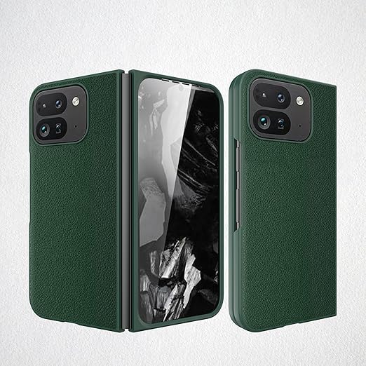 Google Pixel 9 Pro Fold / 10 Pro Foldのケース 薄型 軽量 レイシ模様のレザー カバー 折り畳み 携帯電話 全面保護 ワイヤレス充電 レンズ保護 フリップ おしゃれ 可愛い 面白い 窓 キャラクター キラキラ 金属 手帳型 スマホ 人気 財布型 ソフト耐衝撃 指紋防止 落下防止 磁気 かわいい 滑り防止 Beautycatcher - 緑 a