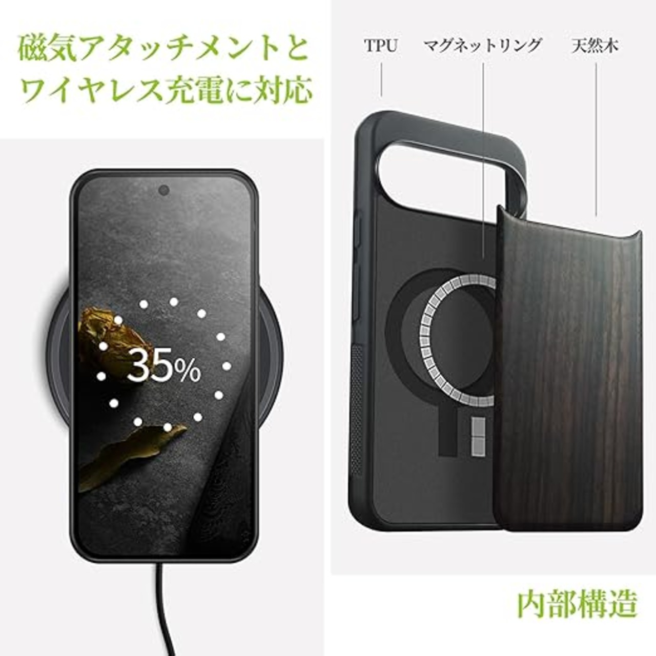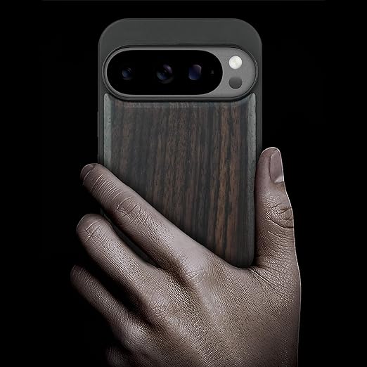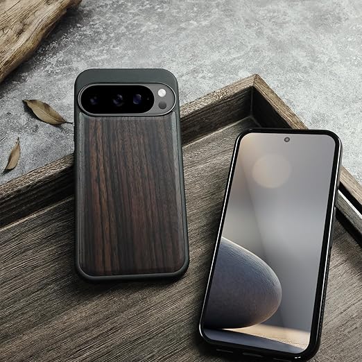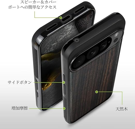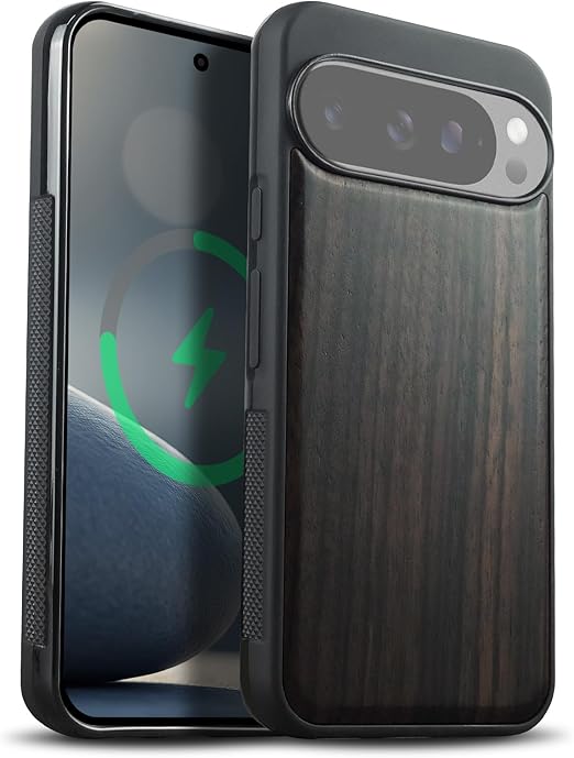 Carveit MagSafe (マグセーフ) 対応 Google Pixel 10 Pro ケース 木製 【天然木+TPUシリコンツーインワン】 磁気内蔵 グーグルピクセル 10 Pro ケース ウッド 耐久性 滑り止め 指紋防止 耐衝撃 カバー (黒い木-白木スタイル) a