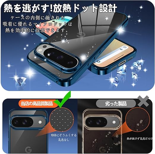 【驚きの透明感・メッキ加工】Google pixel 10/10 Pro用ケースの背面は透き通った高い透明度を誇り、フレームは多層メッキ加工技術によって設計。オシャレで独特の輝きを放ち、シンプルで高級感溢れています。Google pixel 10/10 Proの美しさはそのままに本体を保護しているのです。そして、これはGoogle pixel 10