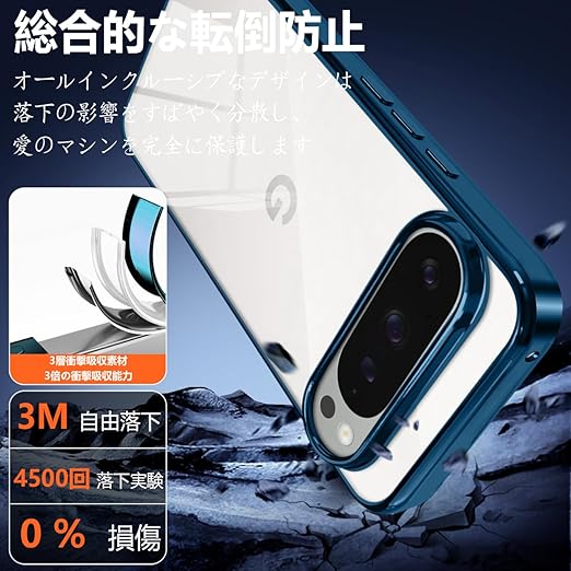 Google pixel 10/10 Pro 用 ケース クリア 薄型 ピクセル10/10pro スマホケース カバー 透明 TPU 耐衝撃 人気 落下防止(ブルー) a