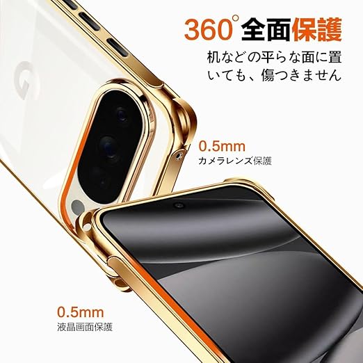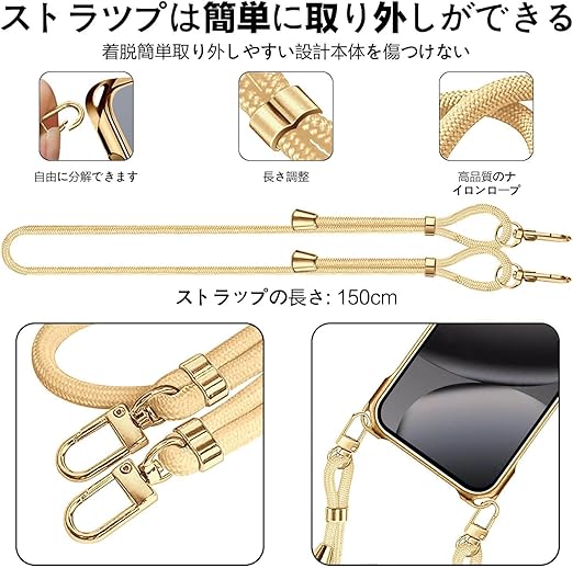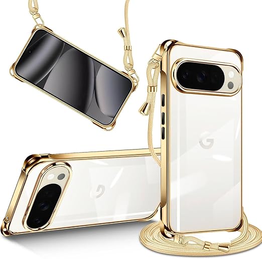 Google Pixel 10 ケース Pixel 10 Pro ケース クリア ショルダー スマホケース ピクセル 10 / 10 プロ カバー 肩掛け 縄掛け 透明 TPU 薄型 耐衝撃 携帯ケース 紐付き 斜めがけ ストラップ着脱可 縦/横 長さ調整可能 取り外し可能 落下防止 紛失防止 かわいい おしゃれ (ゴールド) a