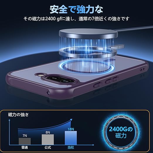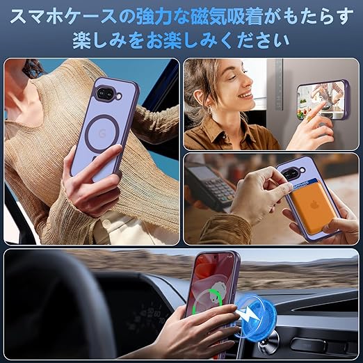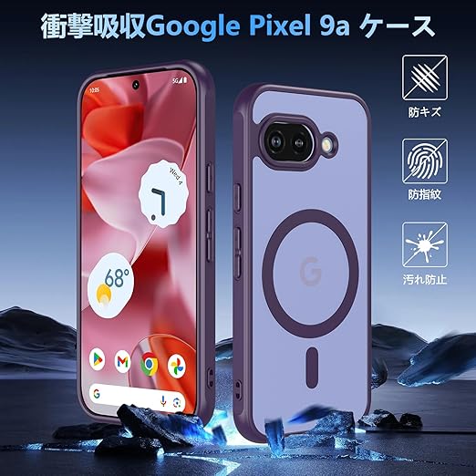 【2025新登場】For Google Pixel 9a ケース MagSafe対応 半透明 クリア 軽量 耐衝撃 指紋防止 黄ばみ防止 ワイヤレス充電対応 スマホケース おしゃれ 人気 グーグルピクセル9a カバー (パープル) a