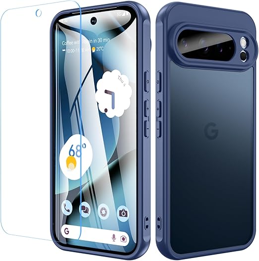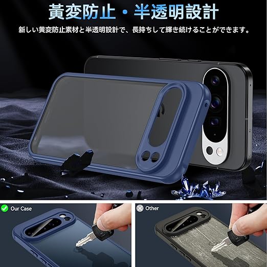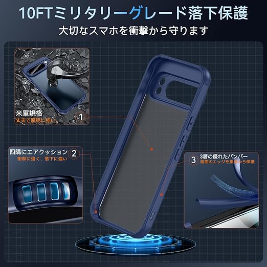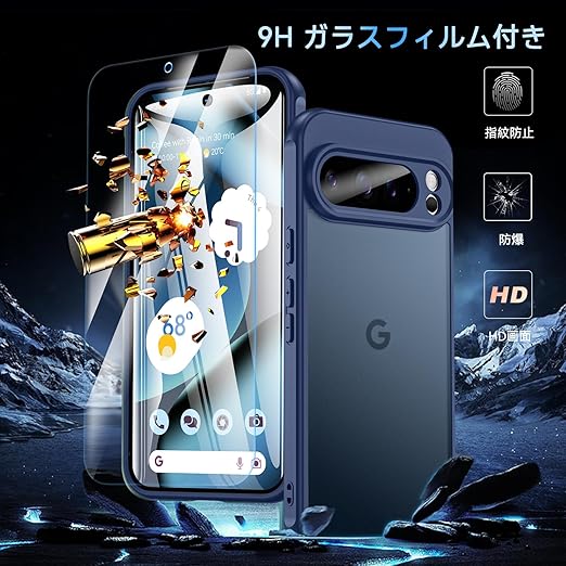 Google Pixel 10 Pro XL ケース【ガラスフィルム付き】米軍MIL規格対応 耐衝撃&衝撃吸収 TPU+PC素材 指紋防止・黄ばみ防止 グーグルピクセル10カバー(ブルー) a