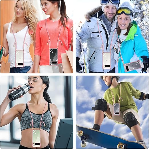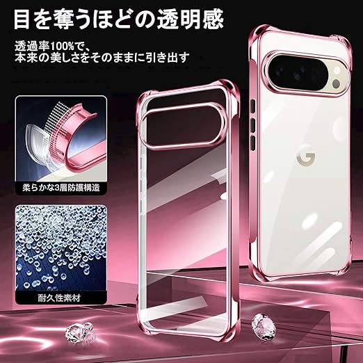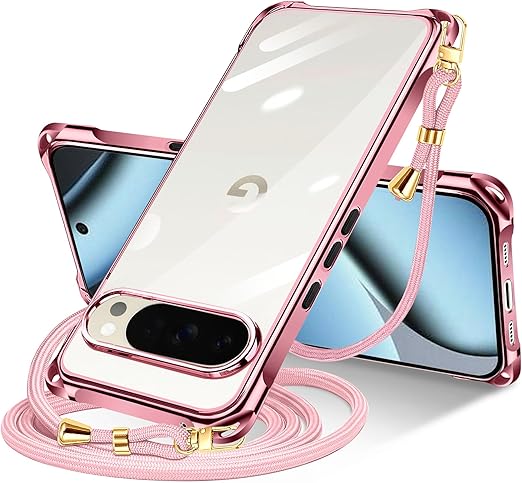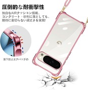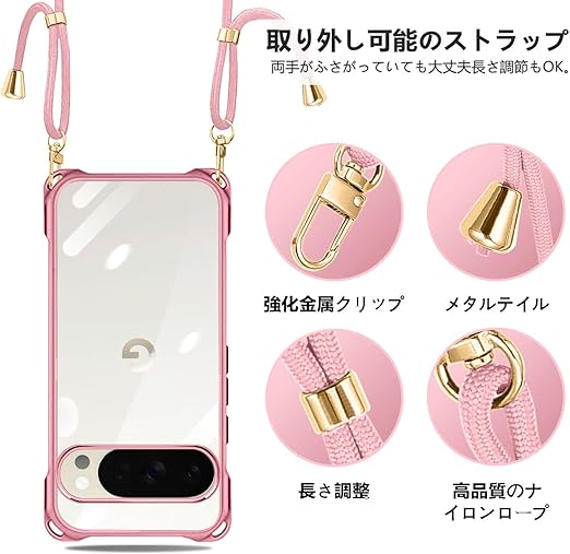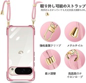 Google Pixel 10 / Pixel 10 Pro 用 ケース クリア ショルダー pixel10 / 10pro 用 スマホケース ピクセル 10 カバー 肩掛け 斜めかけ 縄掛けケース 透明 薄型 軽量 TPU 紐付き 斜めがけ 織りストラップ付き ネックストラップ ショルダー 縦/横 2WAY 長さ調整可能 取り外し可能 落下防止 紛失防止 ワイヤレス充電対応 (ローズゴールド) a