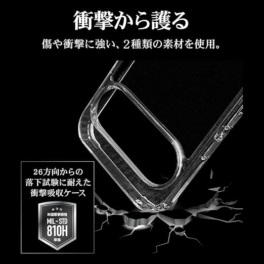 【MIL規格に準拠】米軍MIL規格(アメリカ国防総省で定められた、米軍調達品基準に準拠した規格)、「MIL-STD-810H」最新の衝撃基準規格に準拠。26方向からの落下試験に耐えた衝撃吸収ケースです。