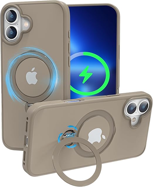 【定点360度回転スタンドとMagSafe併用】smhokesu iPhone 16 plus 用 ケース Magsafe 対応 [定点回転スタンド・超絶安定性] 半透明感 マグセーフ 超強力な磁力 縦横両対応 米軍MIL規格取得・耐衝撃 いphone16 plus ケース アイフォン 16 プラス 用カバー 指紋防止 黄変防止 6.7 インチ チタンゴールド a