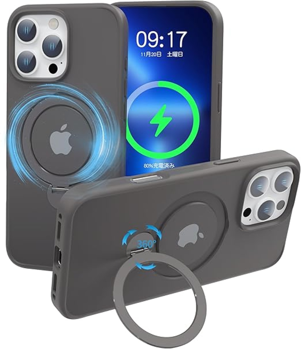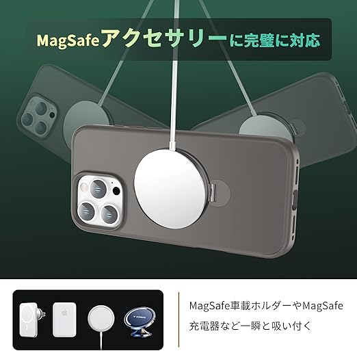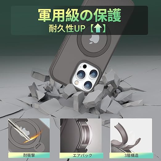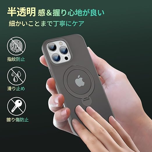 【定点360度回転スタンドとMagSafe併用】smhokesu iPhone 16 pro max 用 ケース Magsafe 対応 [定点回転スタンド・超絶安定性] 半透明感 マグセーフ 超強力な磁力 縦横両対応 米軍MIL規格取得・耐衝撃 いphone16 プロ マックス ケース アイフォン 16 pro max 用カバー 指紋防止 黄変防止 6.9 インチ チタングレー a
