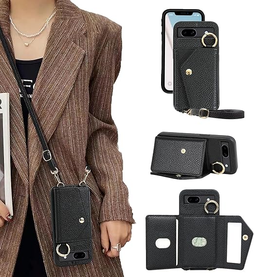 Google Pixel 10 ケース 手帳型 ピクセル10 Pro ケース 手帳型 グーグルピクセル10 財布型 ショルダー 背面カード収納 化粧鏡 スマホケース Googleピクセル10 ピクセル10携帯カバー GooglePixel10ケース スタンド機能 ストラップ 肩掛け 鏡付き - ブラック a