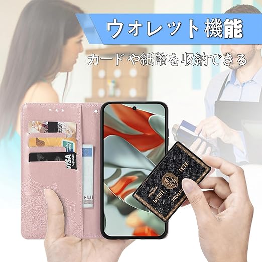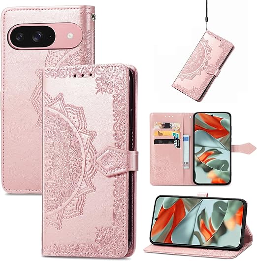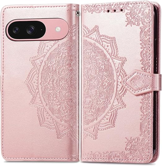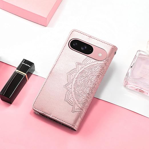 に適用するGoogle Pixel 10 ケース 手帳型 ノートブック型携帯電話保護カバー多機能携帯電話ホルスター財布携帯電話ホルダーバンプパターンテクスチャ耐久性摩擦耐性携帯電話ケース男性と女性に適した多色オプション (マンダラローズゴールド) a