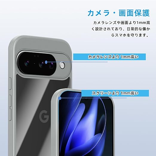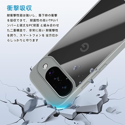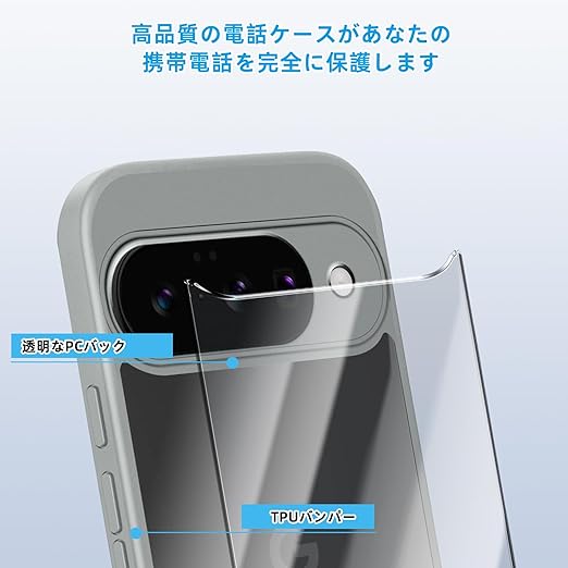 [SinRenn] Google Pixel 10 5G ケース クリア 360°全面保護 薄型 レンズ保護 スマホケース 耐久性 透明PC背面+ソリッドカラー TPUフレーム 耐衝撃 携帯カバー 黄変防止 擦り傷防止 米軍MIL規格 落下防止 携帯ケース Google Pixel 10 5G スマホカバー(グレー) a