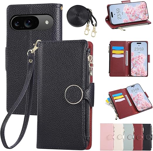 Rosbtib Google Pixel 10 / 10 pro ケース 手帳型 グーグル ピクセル10 ケース 手帳型 ショルダー 財布型カバー Pixel10 ケース おしゃれ ファスナー型 小銭入れ カード収納 ピクセル10プロ 手帳型ケース 手首/肩掛けストラップ付 マグネット式 スタンド機能 ピクセル10 / 10 pro スマホケース 可愛い 女性 肌触り良い 全面保護(ブラック) a