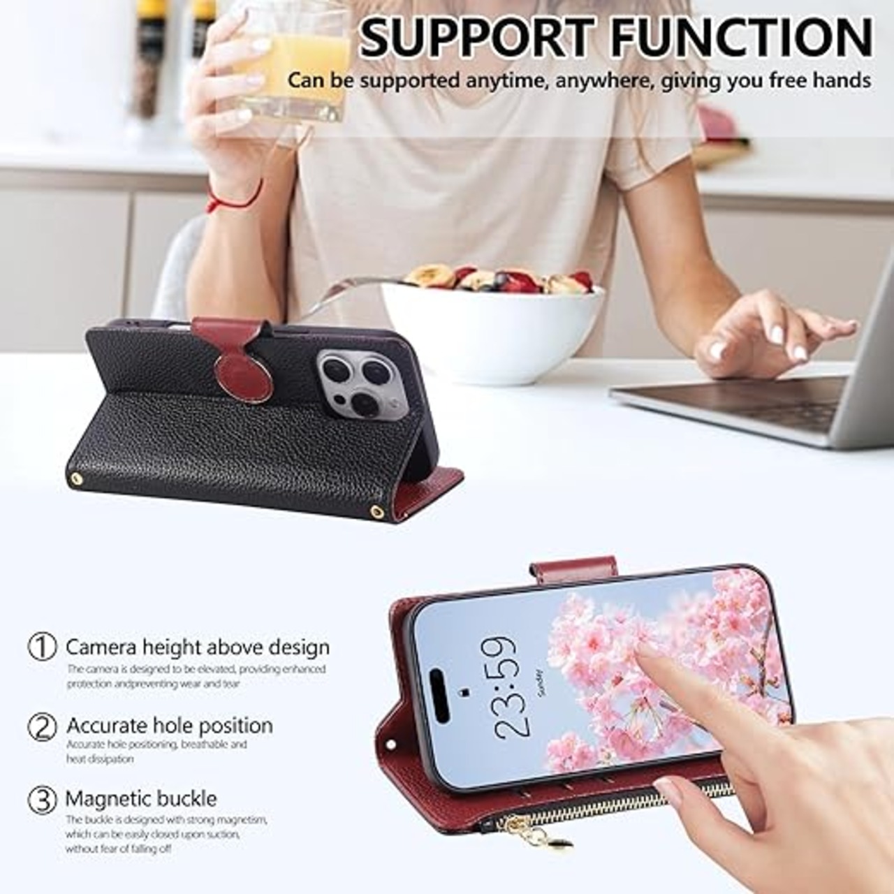 【機能性・実用性抜群】① 同色同素材のストラップ(長+短)が付属するのも魅力的