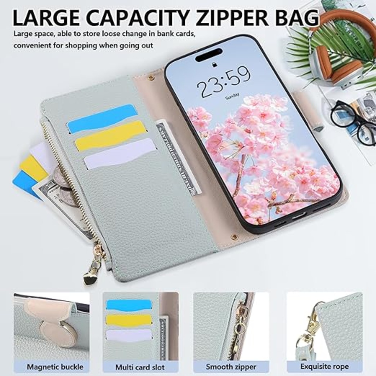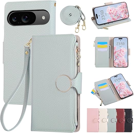 Rosbtib Google Pixel 10 / 10 pro ケース 手帳型 グーグル ピクセル10 ケース 手帳型 ショルダー 財布型カバー Pixel10 ケース おしゃれ ファスナー型 小銭入れ カード収納 ピクセル10プロ 手帳型ケース 手首/肩掛けストラップ付 マグネット式 スタンド機能 ピクセル10 / 10 pro スマホケース 可愛い 女性 肌触り良い 全面保護(ブルー) a
