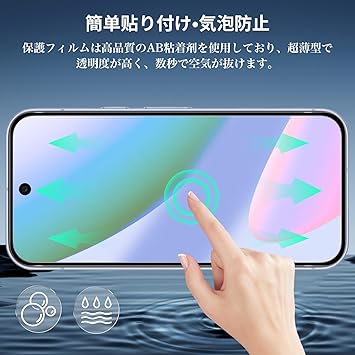 【指紋防止】フィルムの表面には、フロスト加工を施したため微小なテクスチャーや粒子があり、微細な凹凸構造を形成しています。この構造により、指と保護フィルム表面との接触面積が小さくなり、指紋がそのまま付着しにくくなり、油脂の吸着度合いも低下します。