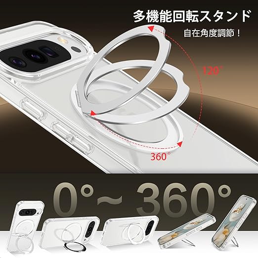 ◆ 360°フリースピンスタンド機能:pixel10 pro xlケース 縦向き/横向きを自由に切り替え