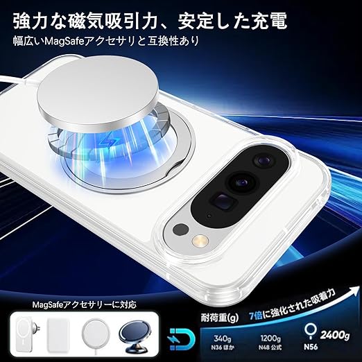 ◆ 磁気吸着:こグーグルピクセル10 pro xlケーススタンドは、MagSafe技術を採用した多機能プロテクションケースです。強力な磁気アレイにより、グーグルピクセル10 pro xlが安定して吸着され、ワイヤレス充電も妨げません。ピクセル10 pro xl ケース さまざまな磁気アクセサリーと組み合わせることができます。保護ケースを装着したままでもスマートフォンを高速ワイヤレス充電可能。