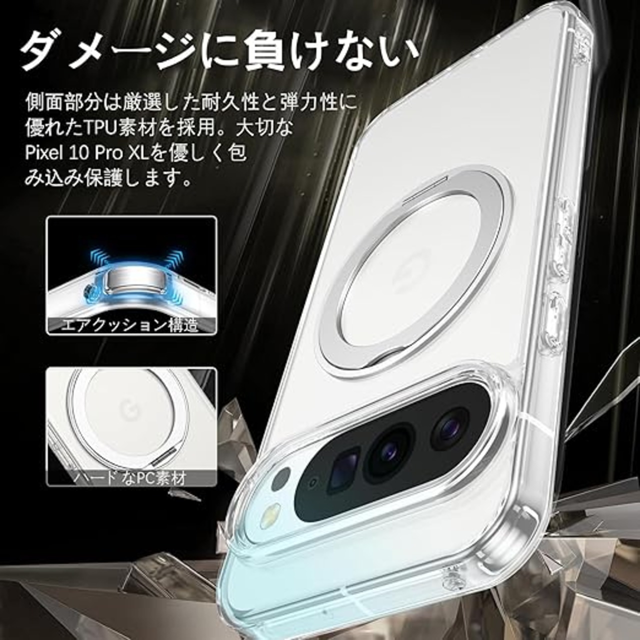 Telaso Google pixel 10 pro xl ケース MagSafe対応 マグネット搭載 スタンド機能 360°回転可能 pixel 10 pro xl ケース 透明耐衝撃 指紋防止 薄型 PC+TPU 車載ホルダー対応 ワイヤレス充電 全面保護 クリア a