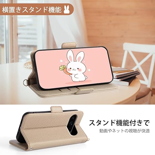 【YIMASE】 対応 Google Pixel 10 ケース 手帳型 かわいいウサギ pixel9 Pro/ pixel9 携帯カバー Pixel 10 Pro ケース 手帳型 グーグルピクセル10 携帯カバー ピクセル10 携帯ケース 全面保護 ブラケット機能 Googleピクセル9 カバー googlepixel9ケース 耐衝撃 財布型 おしゃれ 可愛い カード収納機能,グレー a