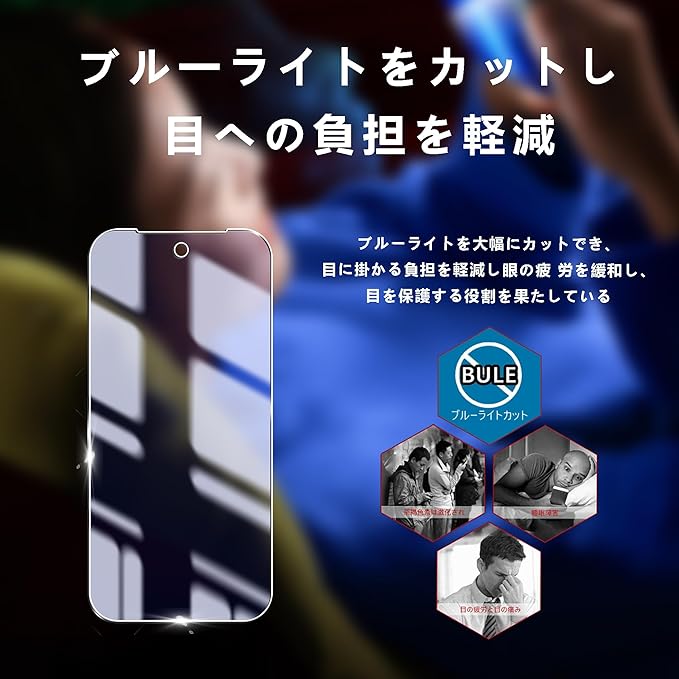 【ブルーライトカット・目の疲れ軽減】ブルーライトカット反射技術採用、太陽の光の下で見るとわずかなブルーに見え、によりブルーライトを大幅にカットでき、目に掛かる負担を軽減させ、長時間携帯電話の画面を見つめて動画を見たり、ゲームをしたりする方には、目の疲労を緩和し、視力を保護す