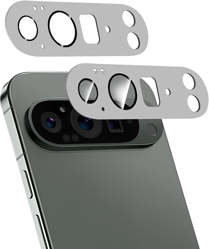 Google Pixel 10 Pro 用 カメラフィルム 【アルミ合金製+強化ガラス】レンズ 保護カバー 耐衝撃 露出オーバー防止 全面保護 高透過率 グーグルピクセル10 Pro レンズ保護フィルム [2枚] (シルバー) a