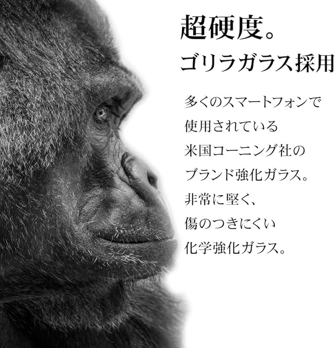 【ゴリラガラス採用】米国に本社をおくコーニングが製造、販売する強化ガラスのブランド名です。IT機器向けで非常にシェアが高く、多くのスマートフォンで使われています。通常