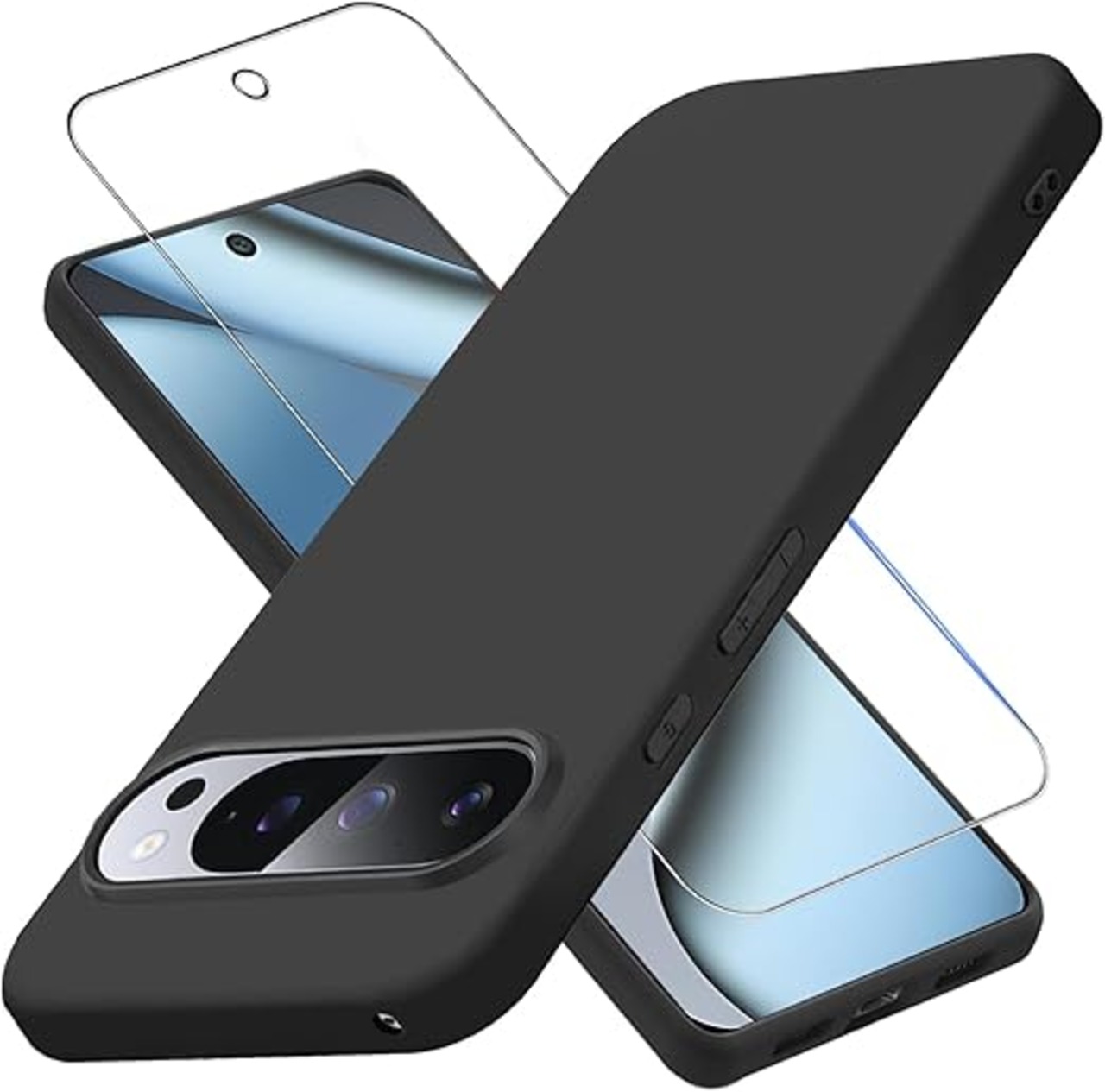 Google Pixel 10/10 Proケース ブラック ガラスフィルム付き グーグルピクセル10カバーマット質感 薄型 柔軟なTPU素材 指紋防止 耐衝撃 軽量 携帯便利 ストラップホール付 ピクセル10 proケース:黒 a