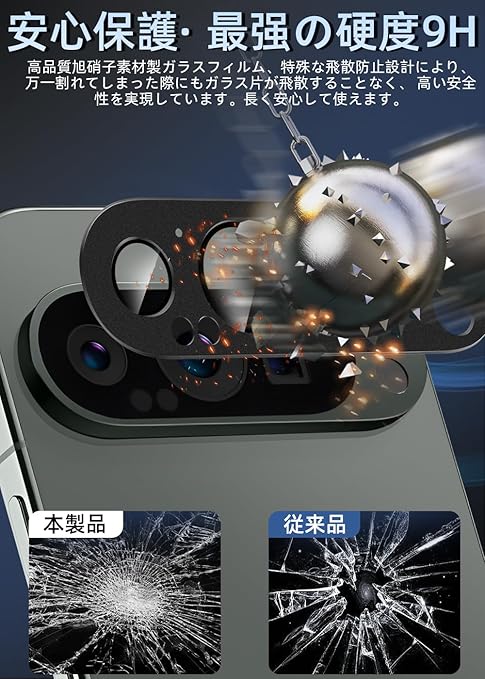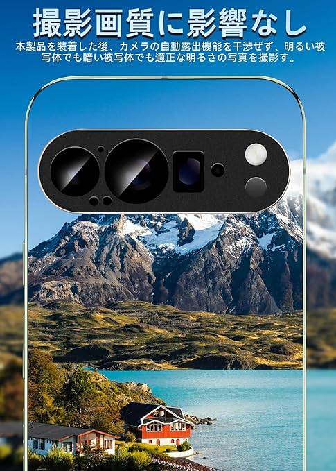 【対応機種・アルミ合金一体感】Google Pixel9 Pro XL 専用カメラフィルム1枚。Google Pixel9 Pro XL機種と同じ色で本体のレンズ部分と完全に融合していく、違和感なく、一体感と高級感が溢れています。衝撃に強いアルミ合金製+日本製9H強化ガラスの組み合わせ全面保護タイプで最高な保護力を提供しています。擦り傷や衝撃からカメラレンズをしっかりと守られます。