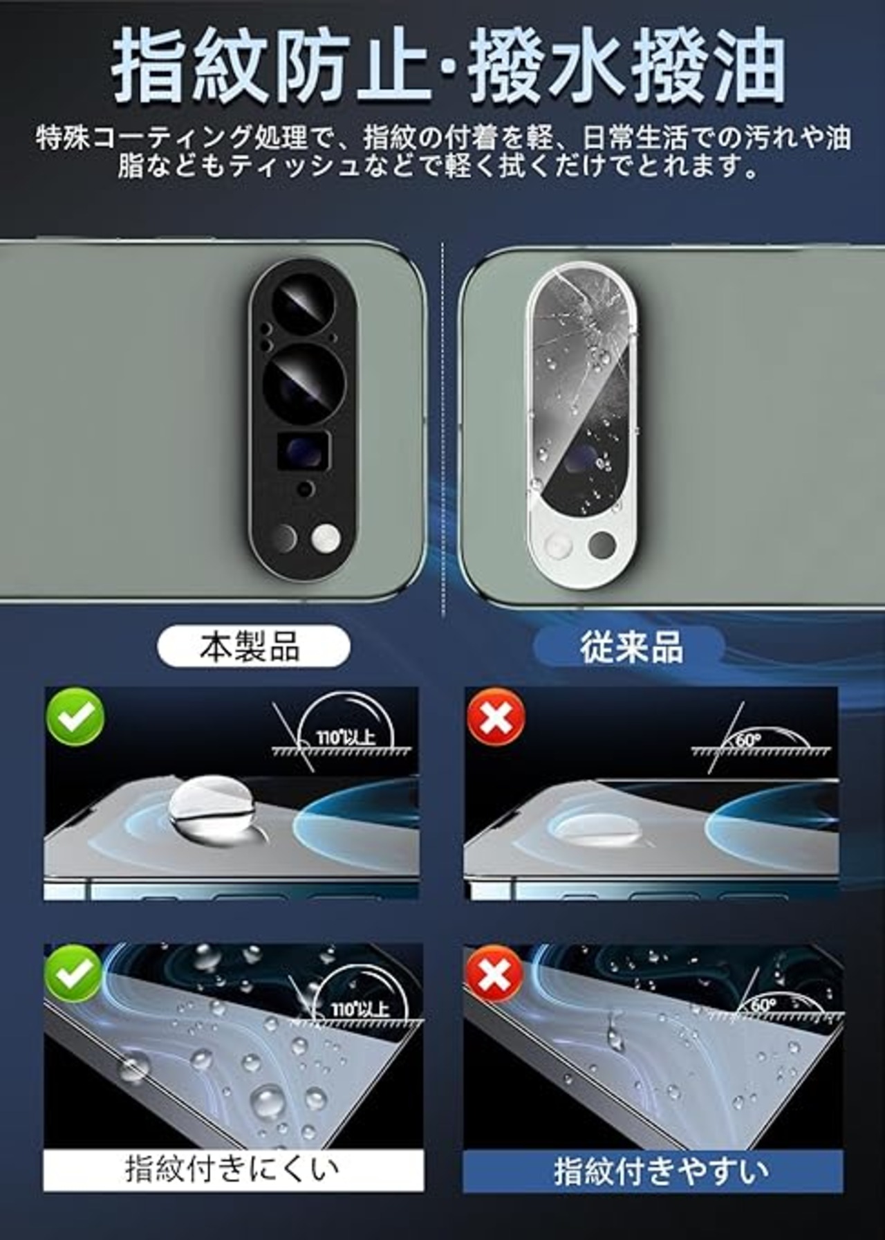 【保護性高い】カメラフィルムはスマホのレンズ部分の全体覆われている,レンズの真ん中にAR超高透過率ガラスを採用され