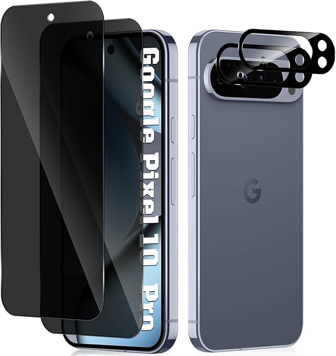 【対応機種】Google Pixel 10 Pro 5G(モデル番号:GEHN3 / G4QUR / GN4F5 )専用設計です。ご購入前に必ずモデル番号をご確認ください。内容物:プライバシー保護フィルム2枚・レンズ保護フィルム2枚・貼付用ツールセット2セット。万が一品質に不具合がございましたら、お問い合わせください。