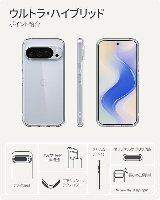 Spigen Pixel 10 Pro XL ケース クリア 透明 耐衝撃 二重構造 米軍MIL規格 ウルトラ・ハイブリッド ACS09738 (クリスタル・クリア) a