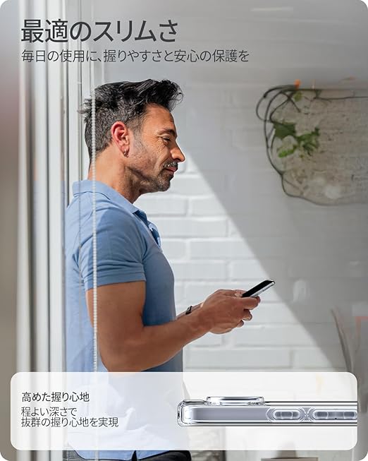 【透明さを守り抜く】黄変を抑制する特殊素材を採用しており、黄変を防ぎます。TPU(熱可塑性ポリウレタン)には補色を応用し作り上げられた『デュラクリア』が使用され、黄変を最小限に抑制しました。