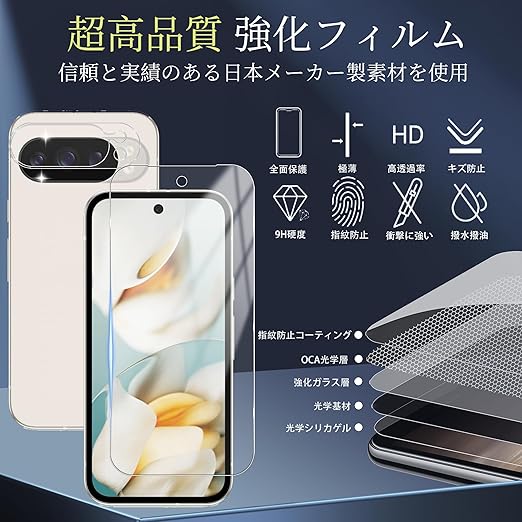 【対応機種】Google Pixel 10 Pro XL 5G ガラスフィルム*2枚+カメラフィルム*2枚