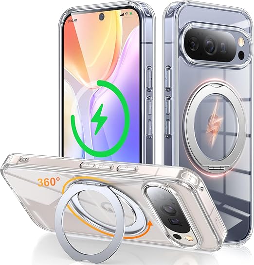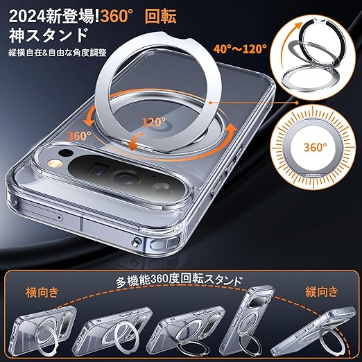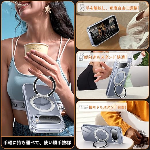 Google Pixel 10 Pro XL 用 ケース Magsafe対応 ワイヤレス充電 360°回転スタンド 縦横両対応 Gunwon スマホケース グーグル ピクセル 10 プロ XL 透明 米軍規格 耐衝撃 マグセーフ リング マグネット搭載 ぐーくるぴくせる10 ProXL カバー「クリア」 a