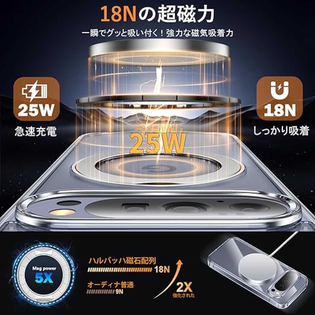 【対応機種】:Google Pixel 10 Pro XL (6.8 インチ) 、他のモデルには対応しておりません。ご購入の際は対応機種を十分にご確認ください。ワイヤレス充電やモバイルバッテリーなど全てのMagSafe用アクセサリーにもばっちり対応しています。製品に不具合が生じた場合は、【出品者に連絡】をクリックして弊社宛まで直接にお問い合わせ下さい。お客様からのお問い合わせ内容に応じて商品交換・返品可能です。【Google Pixel 10 Pro XL 用 ケース / グーグル ピクセル 1