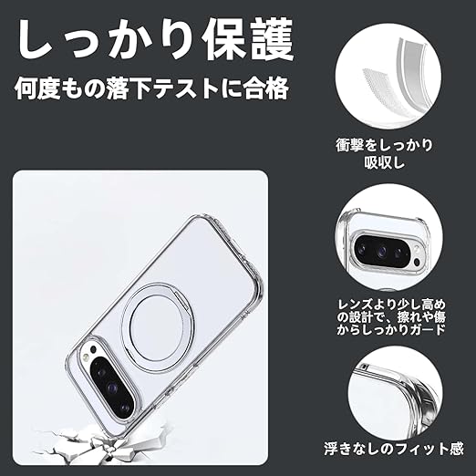 TrendKase Google Pixel 10 Pro XL 専用 ケース 360° 回転リング MagSafe グーグルピクセル10proxl カバー ワイヤレス充電 リング ぴくせる 10proxl 携帯ケース マグセーフ対応 pixel10プロxl スマホケース 縦横無尽に回転 多機能スタンド 「クリア」 a