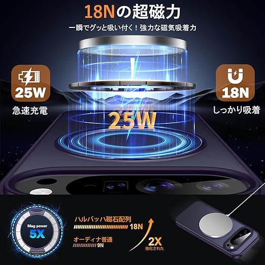 【対応機種】:Google Pixel 10 Pro XL (6.8 インチ) 、他のモデルには対応しておりません。ご購入の際は対応機種を十分にご確認ください。ワイヤレス充電やモバイルバッテリーなど全てのMagSafe用アクセサリーにもばっちり対応しています。製品に不具合が生じた場合は、【出品者に連絡】をクリックして弊社宛まで直接にお問い合わせ下さい。お客様からのお問い合わせ内容に応じて商品交換・返品可能です。【Google Pixel 10 Pro XL 用 ケース / グーグル ピクセル 1
